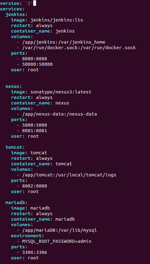services 아래는 container의 이름이 온다. 우리는 jenkins 라고 설정해주었다.