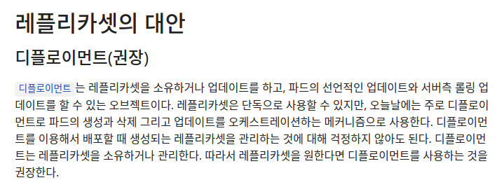 디플로이먼트는 레플리카셋을 관리한다.