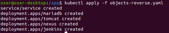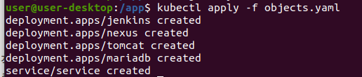 Service - Mariadb deployment - Tomcat deployment - Nexus deployment - Jenkins deployment