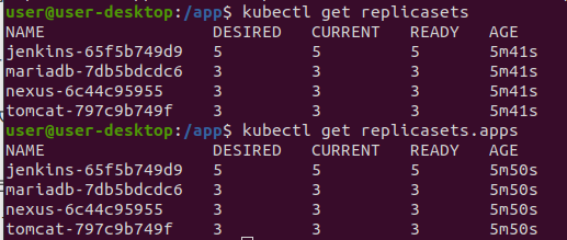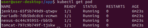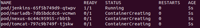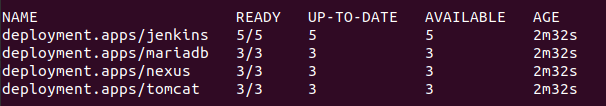 우리가 의도한 레플리카는 jenkins / mariadb / nexus / tomcat 각각 5,3,3,3개 이므로 위와 같이 표기됩니다.