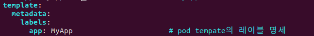 pod 템플릿에서 app:MyApp 이라는 레이블을 가지고있고