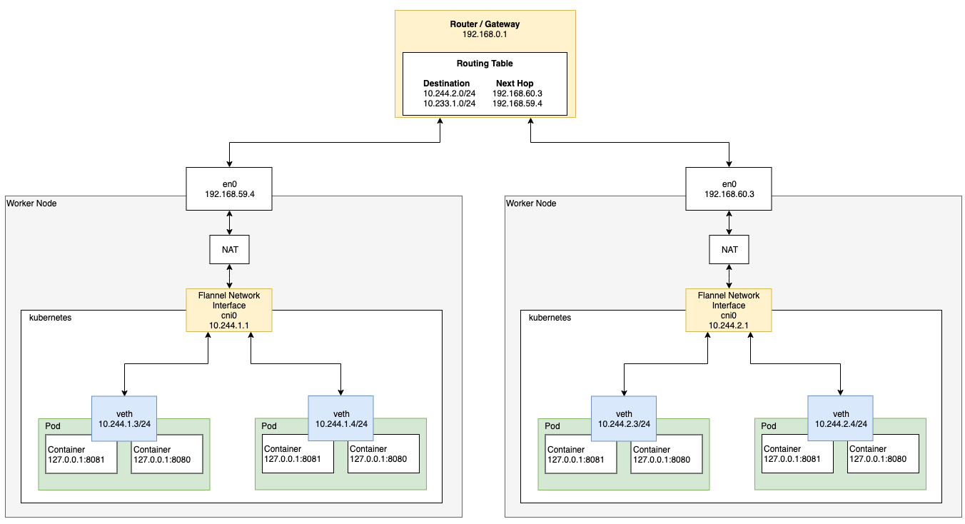너무 간단하기 때문에 kubernetes에서는 Pod 네트워킹 인터페이스로