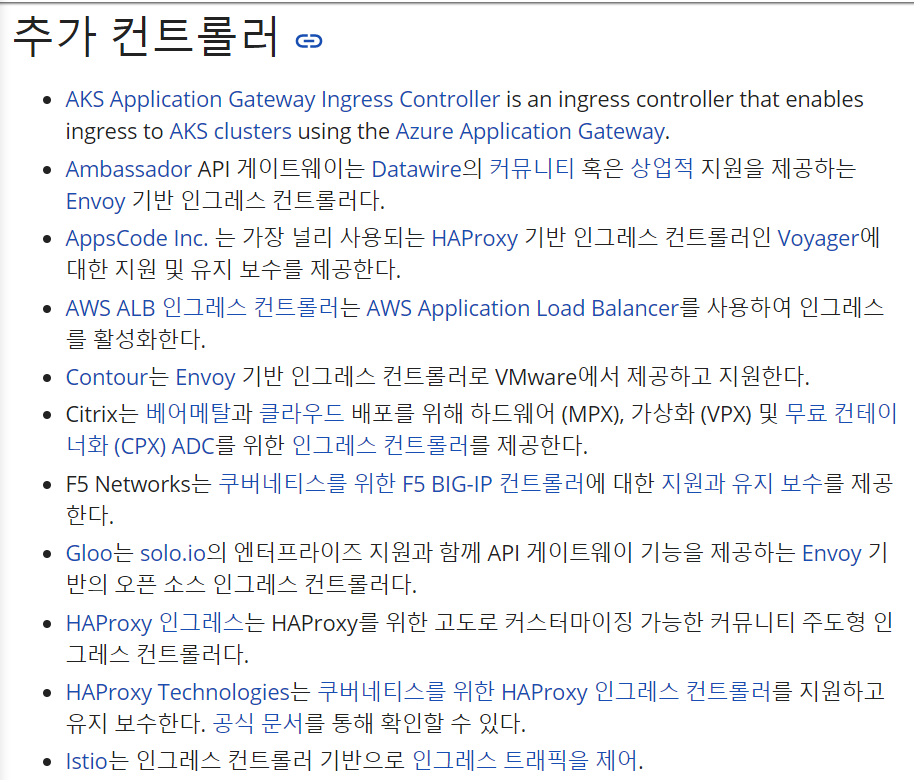 그 중에서 알맞은 인그레스 컨트롤러를 사용하면 된다.