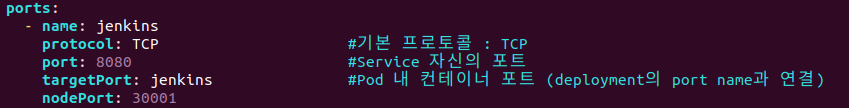 targetPort는 TCP jenkins라는 이름을 가진 port를 대상으로 한다.