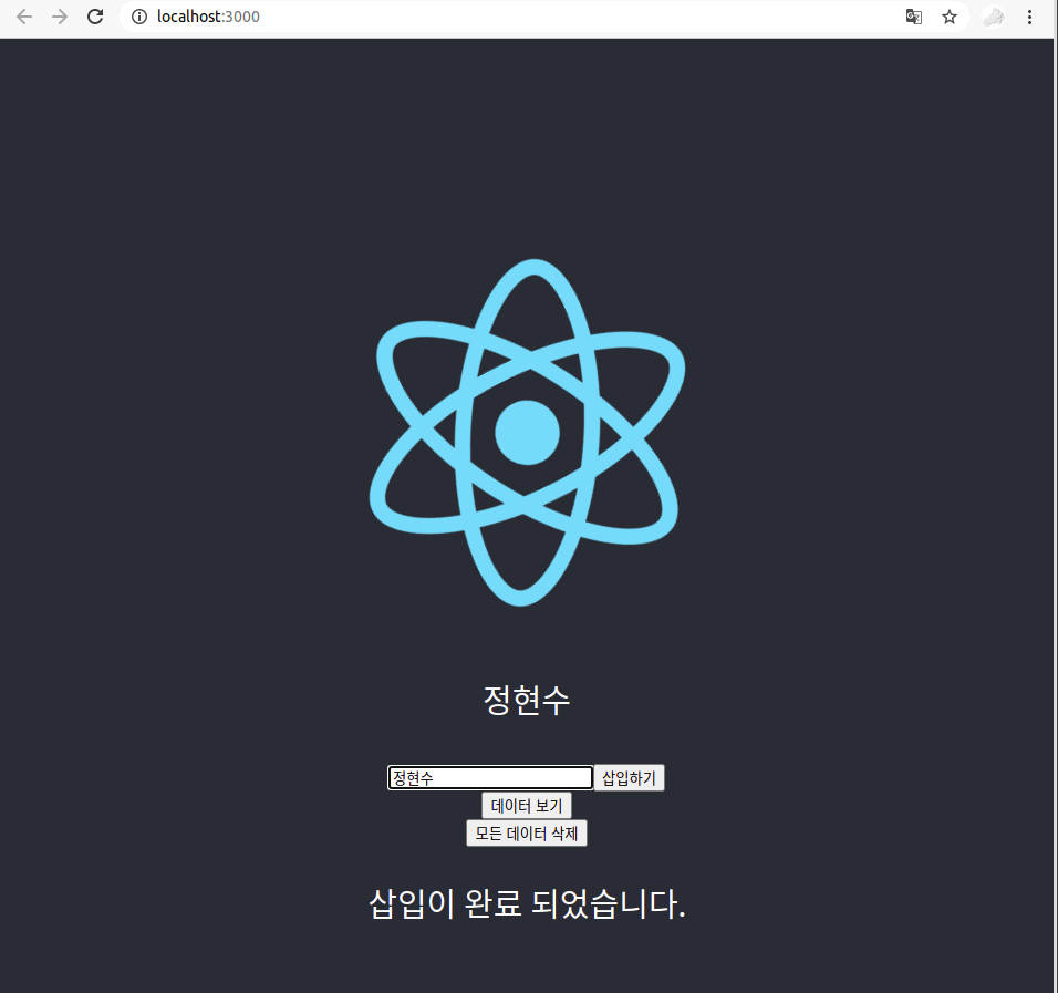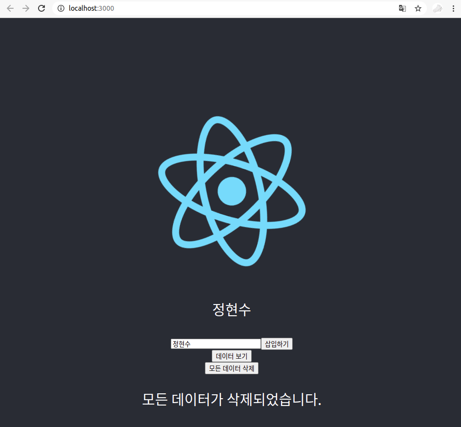 그리고 모든 데이터 삭제버튼을 누르면 모든 데이터가 삭제되는식의 간단한 애플리케이션을 만들어보았습니다.