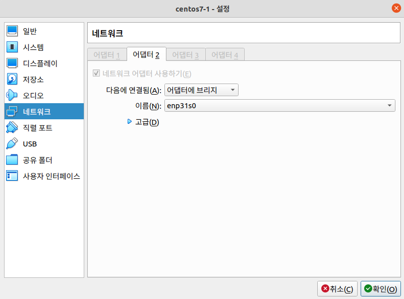 네트워크는 모든 가상머신에 브릿지 네트워크를 적용시켜주었습니다.