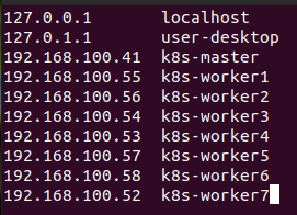 | 8(서브컴퓨터) | k8s-node7 | 192.168.100.52 | user |