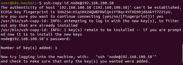 로 ssh key를 복사해서 마스터 노드에서 접근가능하게 설정을 해주어야 합니다.