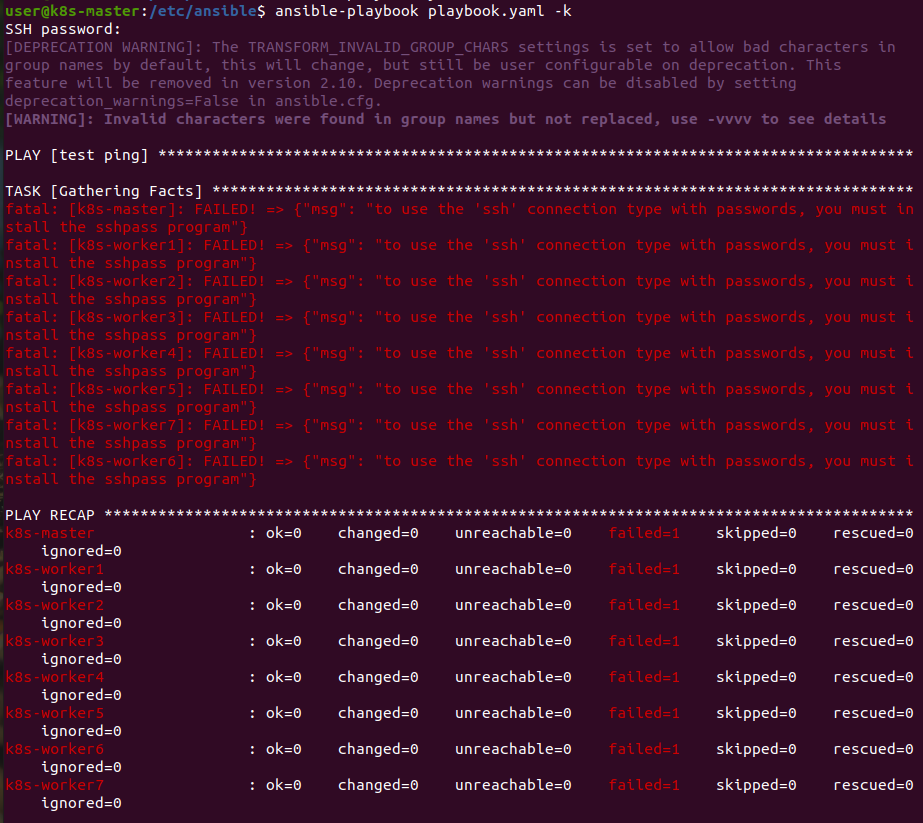 메인 컴퓨터에서 Ansible을 통해서 한번의 명령어로 모든 노드에 쿠버네티스가 동시에 설치되도록 해주어야 합니다.