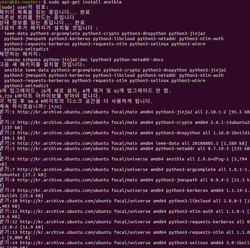 이렇게 ansible을 이용해서 kubernetes를 한꺼번에 설치할 수 있는 여건이 충족 되었습니다.