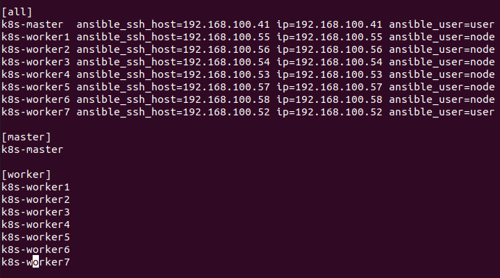 [all] 그룹과 [master] , [worker] 그룹을 생성 해 주었습니다.