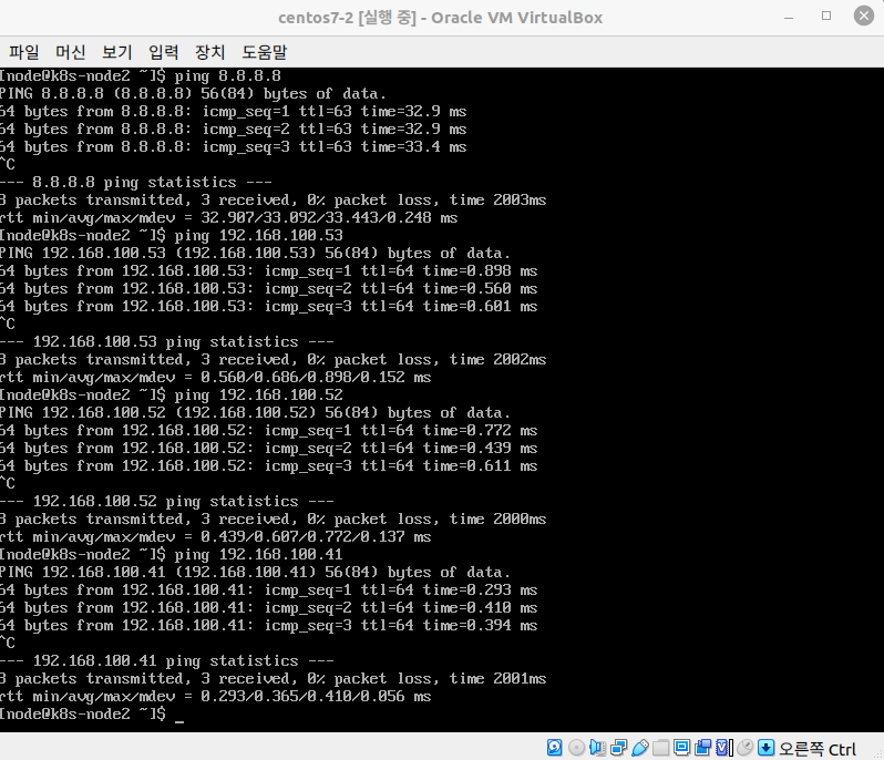 마스터 노드에서 모든 Virtual Box로 네트워크 통신이 가능하도록 해주어야 하고