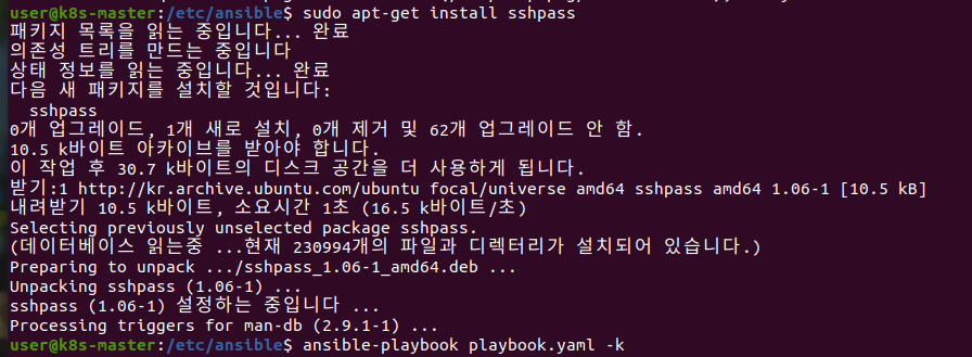 sshpass라는 프로그램을 host에 깔아야 한답니다. 그래서 설치를 해주었습니다.