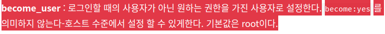 그리고 그 become의 권한을 받을 user는 become_user로 따로따로 설정을 해주었습니다.