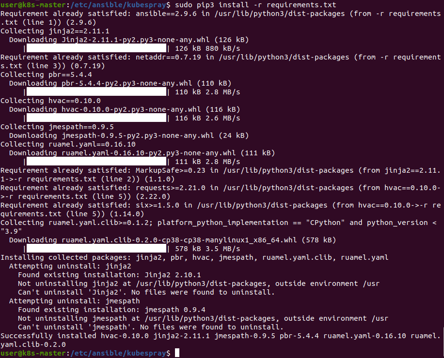ansible-playbook -i inventory/mycluster/inventory.ini --become cluster.yml