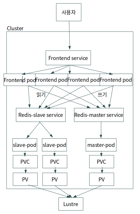 1. 방명록을 저장하는 단일 인스턴스 Redis 마스터 (pod 한 개)