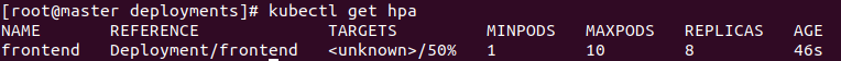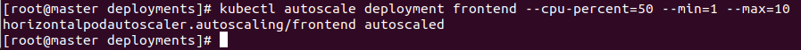 kubectl autoscale deployment frontend --cpu-percent=50 --min=1 --max=10