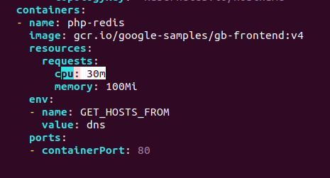 저희가 디플로이먼트를 생성할 때 CPU요구량을 30m로 설정해줬기 때문에