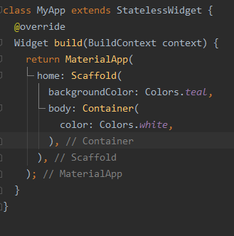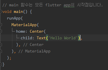 - Material App widget : 우리가 만드는 거의 모든 것은 Material 위젯을 사용한다.