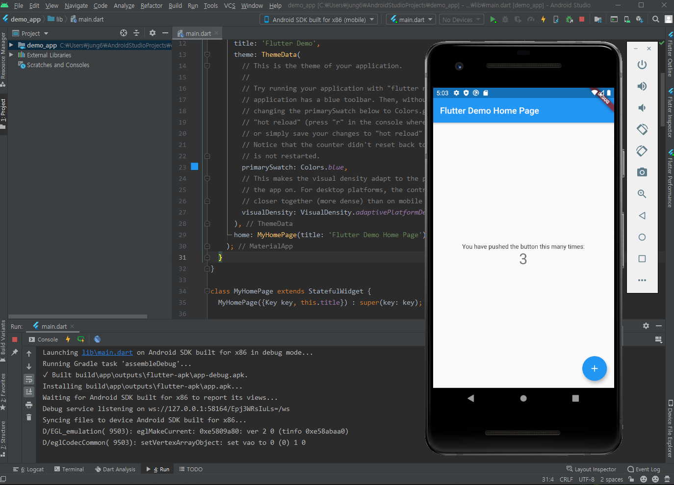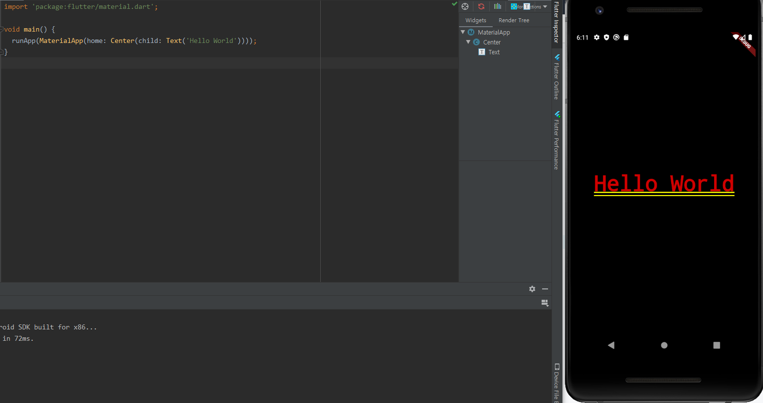 그 전까지는 hot reload 기능이 안됐었는데 build 메소드가 있는 class를 생성하고나서는
