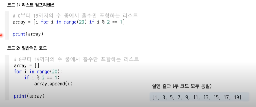리스트 컴프리헨션을 이용하면 네 줄이 나올 코드를 한 줄로 줄일 수 있다!