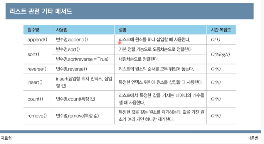 알고리즘에서 가장 많이 사용되는 메소드들을 보여줌 !