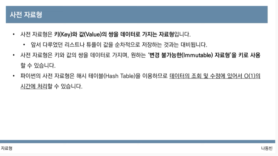 맨 밑에 줄은 사전 자료형과 동일하다!
