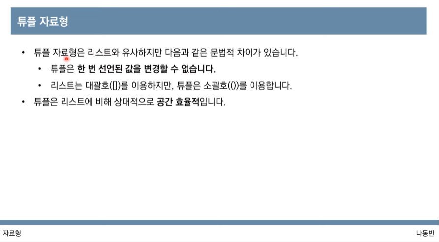 ex ) 튜플은 변경이 안되니까, key 값으로 사용이 된다.
